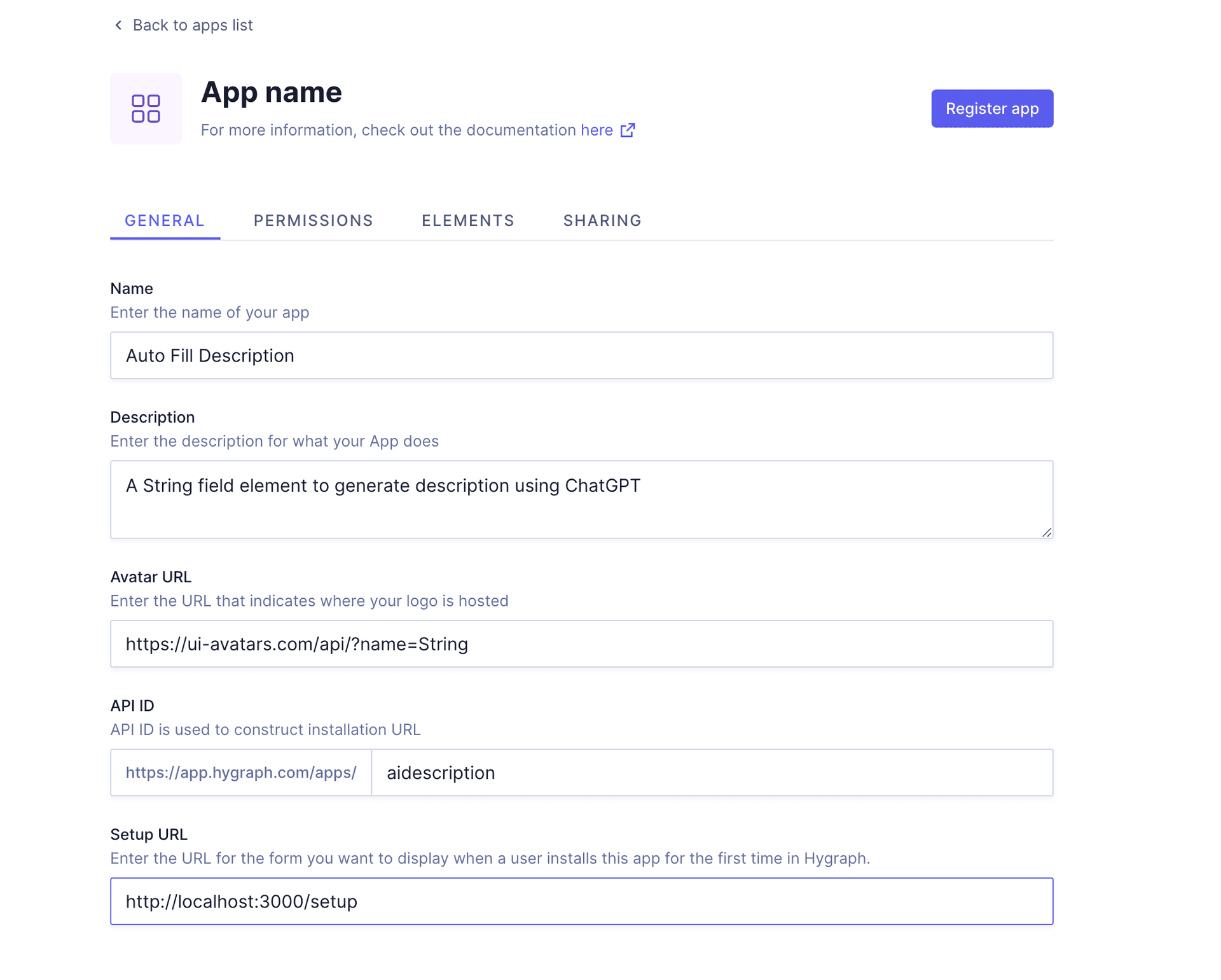Your Auto Fill Description app is now created in Hygraph and is currently available for installation on many projects.